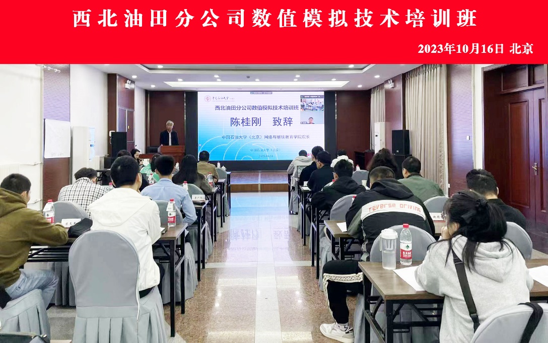 2023年10月16日上午,由中國(guó)石油大學(xué)(北京)承辦的西北油田分公司數(shù)值模擬技術(shù)培訓(xùn)班順利開班。來(lái)自西北油田分公司的20名油藏技術(shù)骨干參訓(xùn)。網(wǎng)絡(luò)與繼續(xù)教育學(xué)院院長(zhǎng)陳桂剛、西北油田分公司高級(jí)專家劉學(xué)利出席了開班典禮。