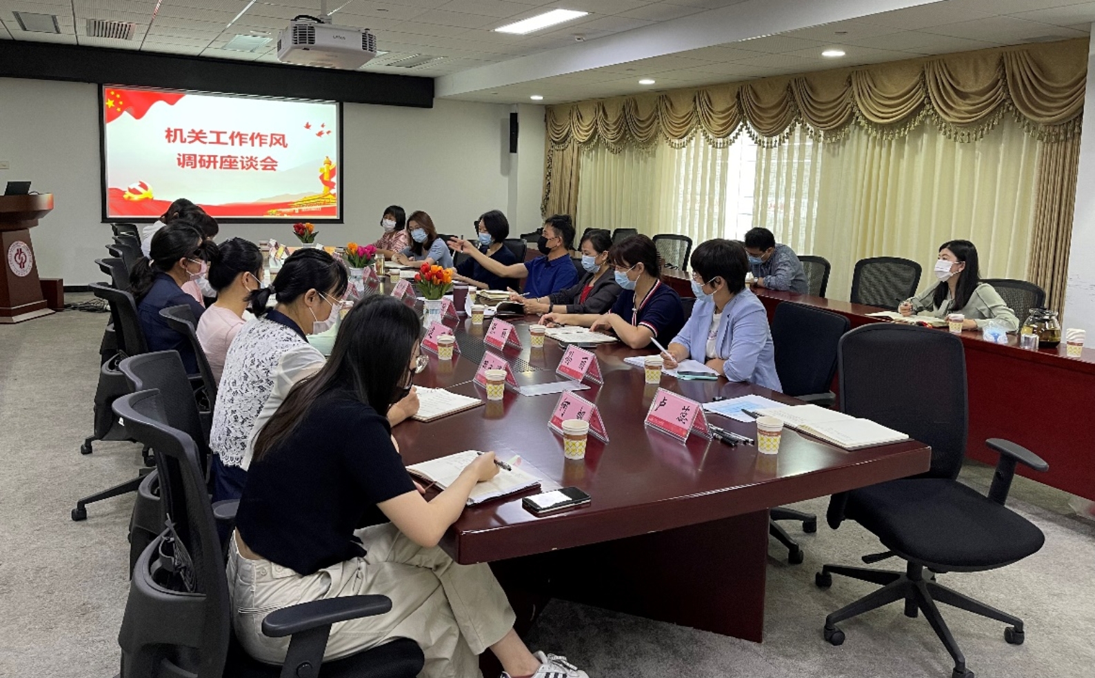 會上,王仲民通報了半年來機關工作作風建設工作的籌備和推進情況。各參會代表結合工作實際和切身體驗,對機關整體工作作風、辦事效率、服務態度和水平給予了中肯評價,并圍繞進一步明確工作職責、強化溝通協調、推進信息化和無紙化辦公、提升管理共情能力、落實“以師生為中心”的服務理念等問題展開熱烈討論,提出了具體的意見和建議。