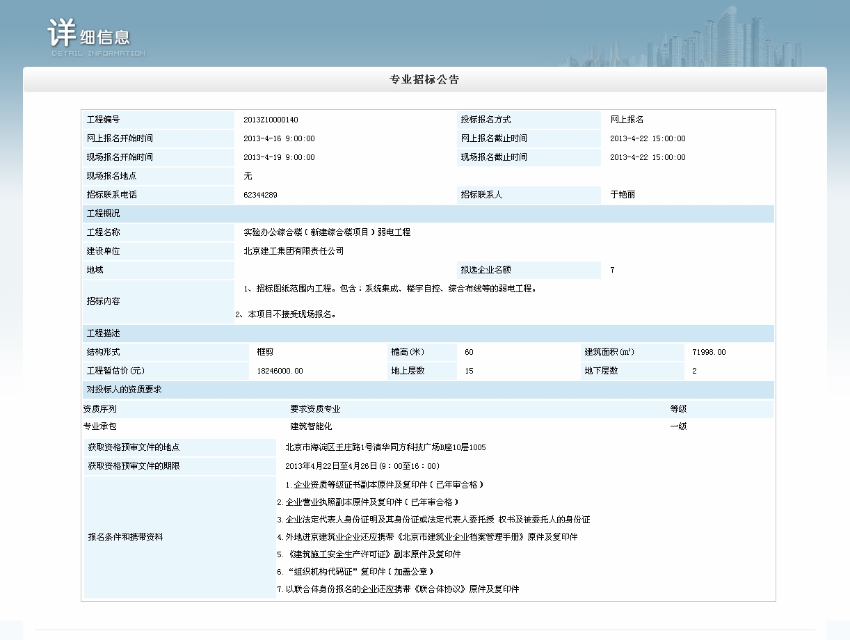 附圖:北京市工程建設(shè)交易信息網(wǎng)實(shí)驗(yàn)辦公綜合樓(新建綜合樓項(xiàng)目)弱電工程招標(biāo)公告