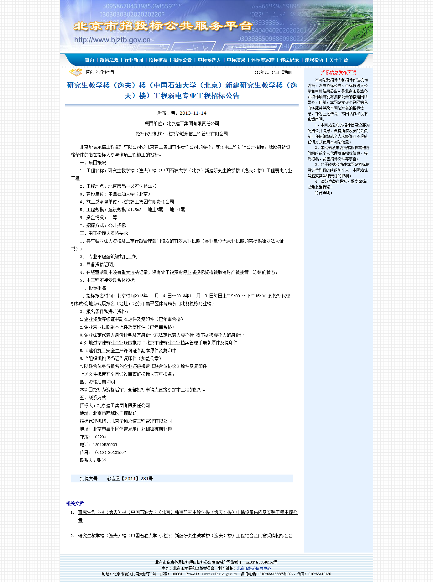附圖:北京市招投標(biāo)公共服務(wù)平臺網(wǎng)站中國石油大學(xué)(北京)研究生教學(xué)樓(逸夫)樓(中國石油大學(xué)(北京)新建研究生教學(xué)樓(逸夫)樓)弱電工程招標(biāo)公告