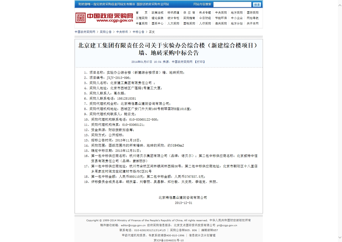 中國(guó)石油大學(xué)(北京)實(shí)驗(yàn)辦公綜合樓(新建綜合樓項(xiàng)目)墻地磚采購(gòu)中標(biāo)公告已在北京市財(cái)政局、中國(guó)政府采購(gòu)網(wǎng)網(wǎng)站公示,您可以通過(guò)以下鏈接查詢公告具體內(nèi)容: