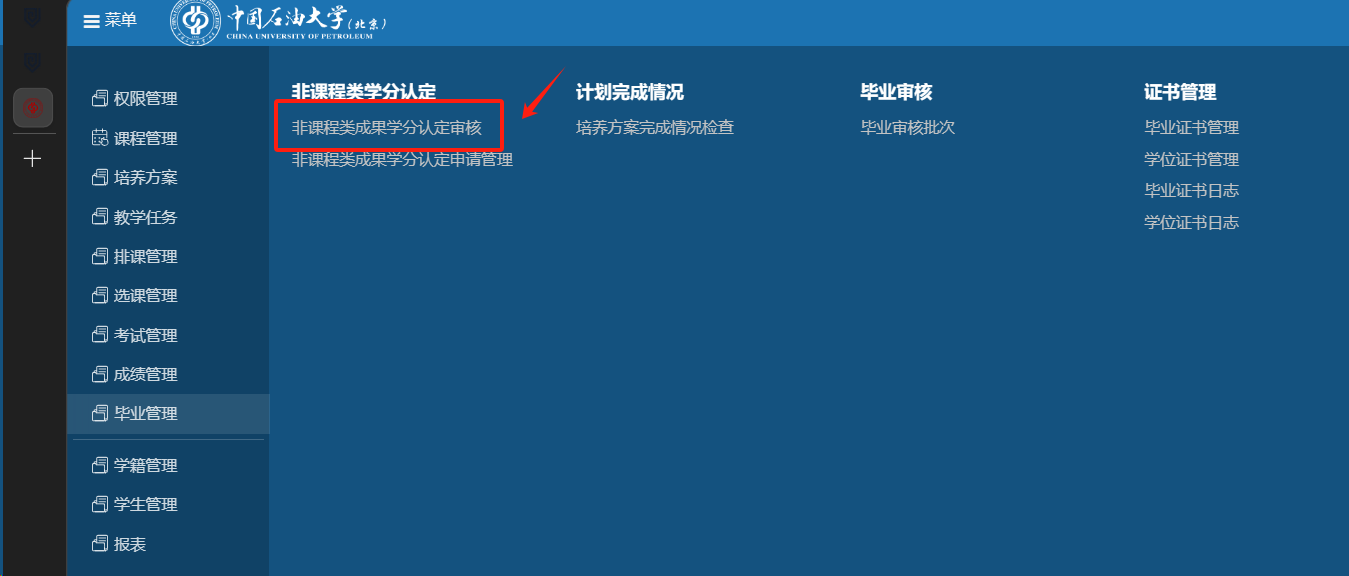 畢業管理 》非課程類學分認定 》非課程類成果學分認定審核