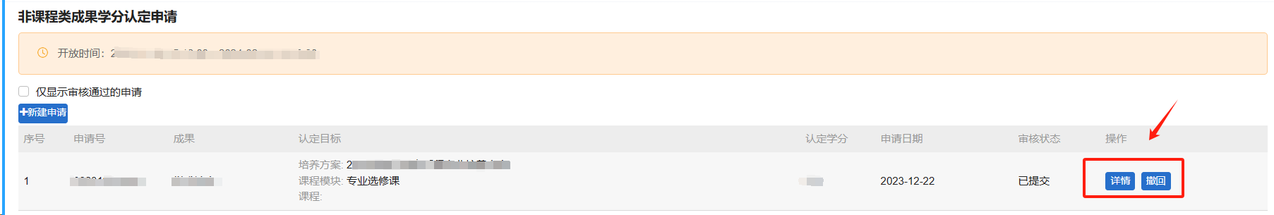 3. 提交申請以后,可點擊申請后的“詳情”查看審核進度,未審核時也可以點擊“撤回”后重新修改提交。