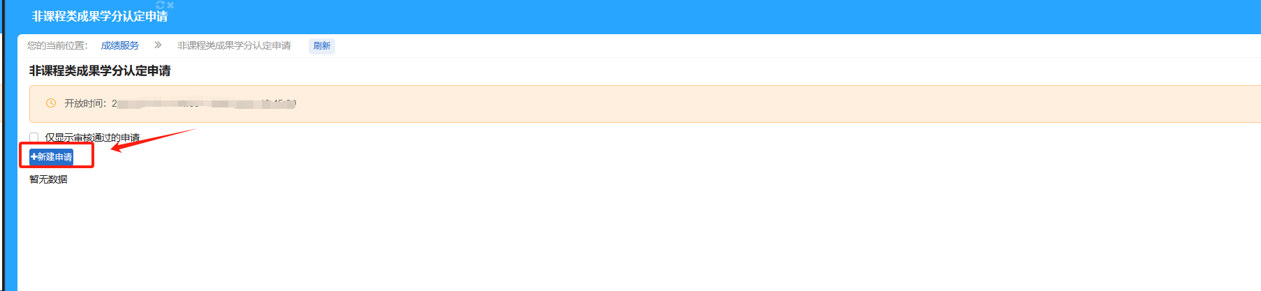 1. 進入功能,開關開啟后可以點擊“新建申請”按鈕新增課程替代申請。