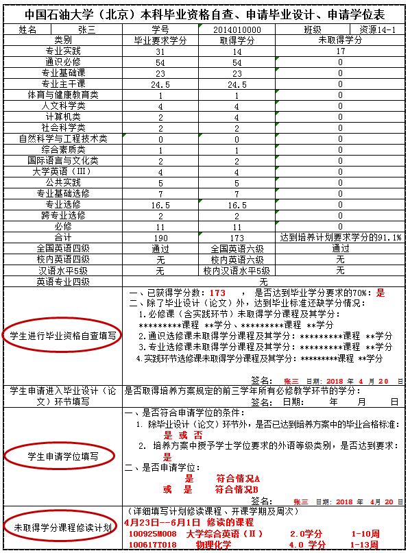根據(jù)所取得學(xué)分,將本人符合的學(xué)位申請(qǐng)情況填寫(xiě)在“學(xué)生申請(qǐng)學(xué)位填寫(xiě)”欄,打印后本人簽名確認(rèn)于4月23日前交至輔導(dǎo)員,由輔導(dǎo)員統(tǒng)一交學(xué)院院辦。申請(qǐng)學(xué)位樣表見(jiàn)附件。