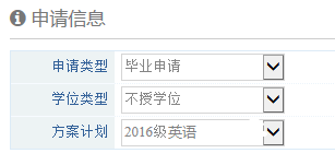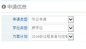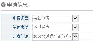 “申請類型”“學位類型”和“方案計劃”,選擇說明: