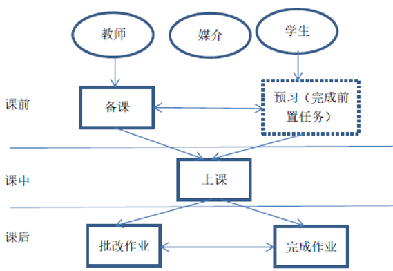 課堂教學(xué)活動(dòng)的重點(diǎn)是師生在教室里同時(shí)同地發(fā)生的互動(dòng)活動(dòng)。此外,課堂教學(xué)也還包含一些不在教室中發(fā)生的事項(xiàng),比如:課前老師備課,學(xué)生完成課前任務(wù);教師有時(shí)需要對(duì)學(xué)生發(fā)放回收一些學(xué)習(xí)材料;課后,老師布置或批改作業(yè),學(xué)生完成作業(yè)等。而且,課堂教學(xué)活動(dòng)中,師生交換的學(xué)習(xí)材料,通常是以書本、紙張等形式作為載體。