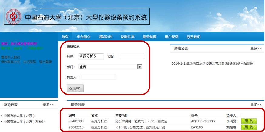 按照學校關于促進大型儀器設備共享開放工作的部署,我處經過近一年的努力,開發了本校的大型儀器設備網上預約系統,現通知予以試用。各院系設備管理人員務必按時查閱該系統,及時答復預約人。同時,也要求教師根據實際需要進行預約,并嚴格按照要求完成評價工作。相應的大型儀器設備共享管理辦法也即將發布。