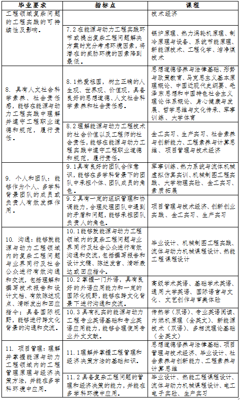 8. 職業規范:具有人文社會科學素養、社會責任感,能夠在能源與動力工程實踐中理解并遵守工程職業道德和規范,履行責任。