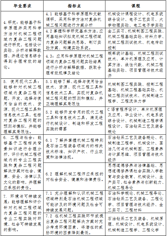 表1 中國石油大學(北京)機械設計制造及其自動化專業知識、能力達成方案
