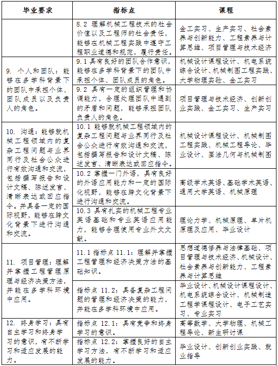 6. 能夠基于工程相關背景知識進行合理分析,評價機械工程領域內的專業工程實踐和復雜工程問題解決方案對社會、健康、安全、法律以及文化的影響,并理解應承擔的責任。