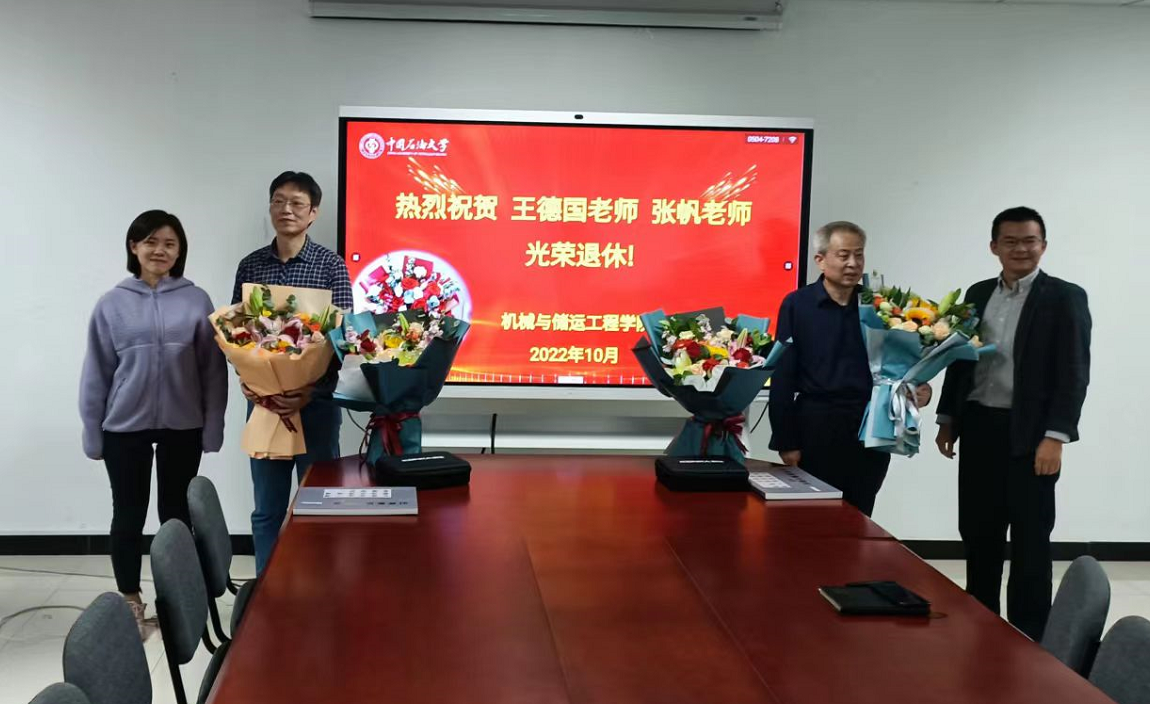 10月14日下午,機械與儲運工程學院在院會議室B921舉辦榮休會,院系領導和部分教師代表齊聚一堂,歡送王德國教授和張帆副教授光榮退休。
