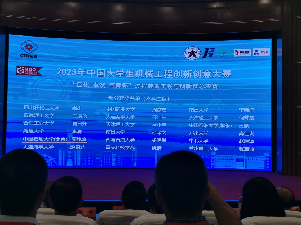 2023年8月26日,中國大學(xué)生機(jī)械工程創(chuàng)新創(chuàng)意大賽——“巨化-卓然-篤舜杯”第十四屆過程裝備實(shí)踐與創(chuàng)新大賽全國總決賽在鄭州大學(xué)落下帷幕。該比賽為過程裝備與控制工程專業(yè)的核心賽事,我校在本次大賽中斬獲全國總決賽一等獎(jiǎng)、二等獎(jiǎng)和三等獎(jiǎng)各2項(xiàng)。機(jī)械與儲(chǔ)運(yùn)工程學(xué)院過程裝備系周宇航、李森、程修福、王玉平組成的研究生組(指導(dǎo)教師:陳建義),周駿琦、楊溢、秦柯禹、劉世強(qiáng)組成的本科生組(指導(dǎo)教師:李巖),雙雙斬獲全國總決賽一等獎(jiǎng)。為了更好地展示作品的實(shí)力和水平,過程裝備系特邀魏耀東教授作為現(xiàn)場帶隊(duì)教師參加大賽。