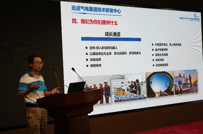隨后,氣電集團技術研發中心液化總師劉淼兒向學院師生介紹了氣電集團技術研發中心情況,深入闡述了研發中心的組織機構、人員配置情況以及戰略定位、核心研發方向、重點攻關項目等關鍵領域的技術實力與創新成果,展現了氣電集團作為國家能源骨干企業在科技創新方面的雄厚實力與引領作用。