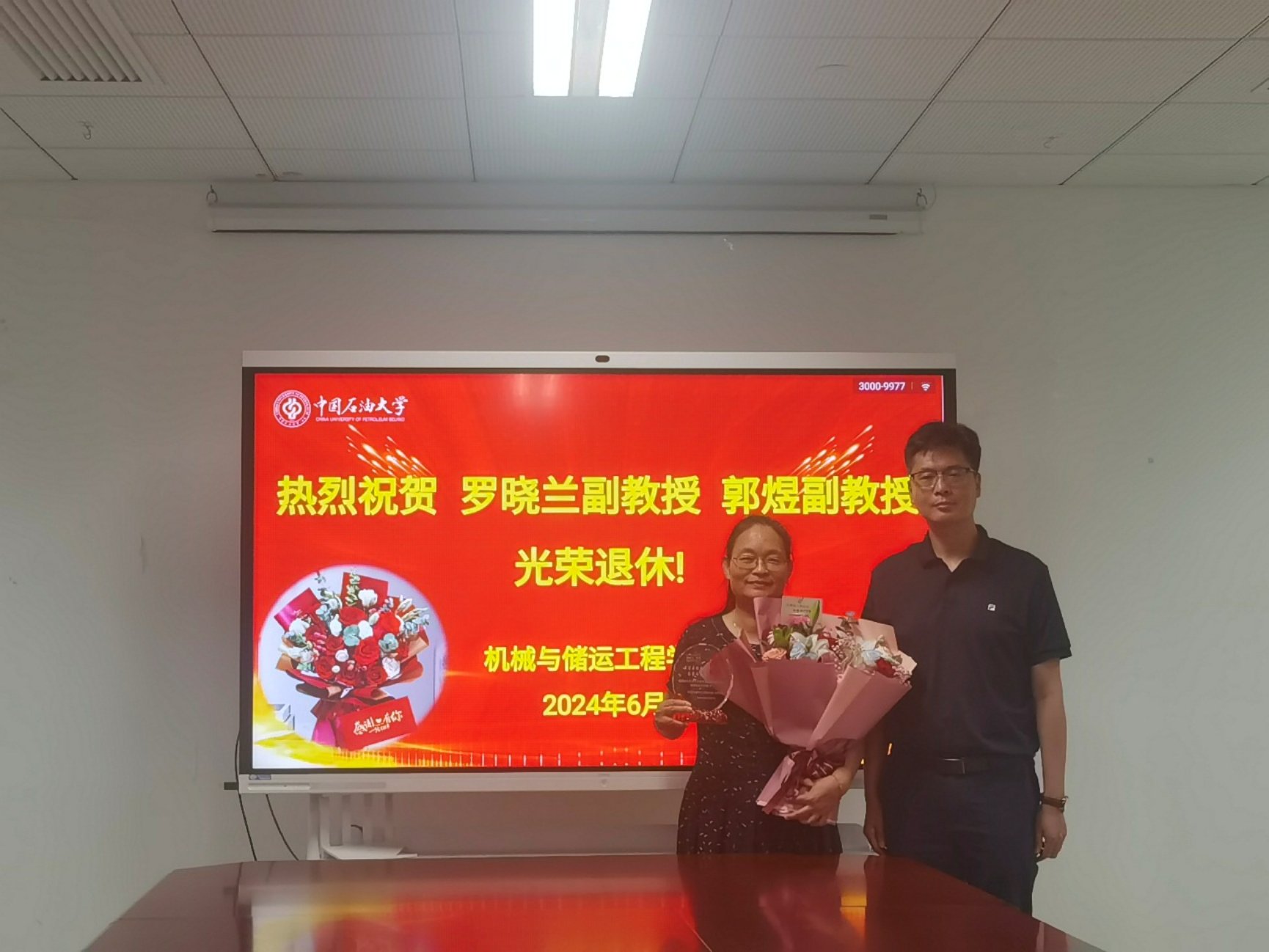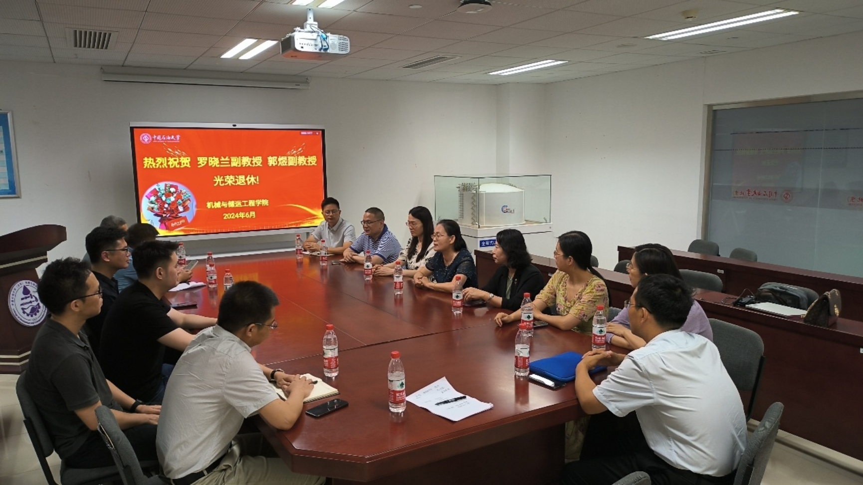 6月27日上午,機械與儲運工程學院在主樓B921舉辦2024年上半年退休教師榮休座談會,慶祝羅曉蘭副教授和郭煜副教授光榮退休。機械學院黨委書記閆亮亮,副院長張玉明、張行,機電系、能動系部分教師代表參加了本次座談會,會議由工會主席彭鶴主持。