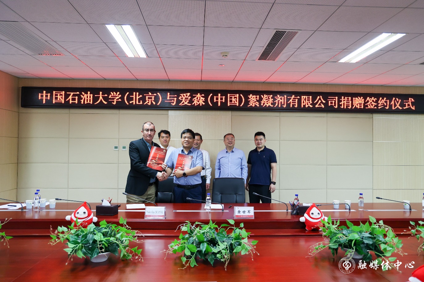 9月25日上午,愛森(中國)絮凝劑有限公司獎學金捐贈儀式與北京云道智造科技有限公司捐贈儀式在中石大舉行。校黨委書記王同奇,黨政辦公室主任黃磊,愛森(中國)絮凝劑有限公司戰略發展與供應鏈總監Nicolas BOISSE、北京云道智造科技有限公司高級副總裁朱子玉、石油工程學院黨委書記黃世軍、機械與儲運工程學院黨委書記閆亮亮和北京中國石油大學教育基金會工作人員參加了此次捐贈儀式。黃磊主持簽約儀式。