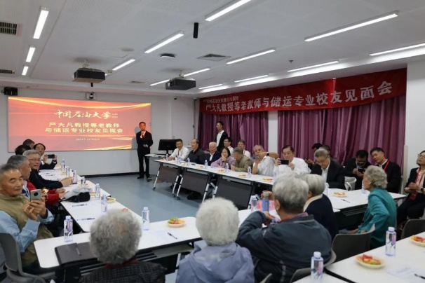 10月2日上午,油氣儲運工程系以“感恩、傳承、創新”為主題主辦了“嚴大凡教授等老教師與儲運專業校友見面會”。嚴大凡、董文蘭、俞蓉蓉、翁維瓏、李才等曾親歷北京石油學院時代的老教師與儲78黃維和等七十余位校友歡聚一堂,共慶華誕。見面會上,翁維瓏、黃維和、錢建華、孫鴿、閆寶東、宮敬、何利民等油氣儲運專業校友,向嚴大凡教授敬獻了著名書法家寇克讓書寫的“儲運泰斗,學界楷模”字幅和“福”字,表達崇高敬意,祝愿老先生福如東海、壽比南山;儲運系青年教師代表向嚴大凡教授以及翁心源之女、張英之女敬獻鮮花,表達對中國油氣儲運事業及高等教育先驅的崇高敬意。李振林院長致辭,對以嚴大凡教授為代表的儲運專業先驅和前輩表示敬意,勉勵后輩繼承發揚光榮傳統,在新時代新征程上不斷開拓進取、守正創新,并祝愿學校儲運專業興旺發達。