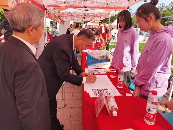 校友們從北校園北門進入學校,在機械學院校友報到處簽到,留下對母校的祝福并在打卡點合影留念。