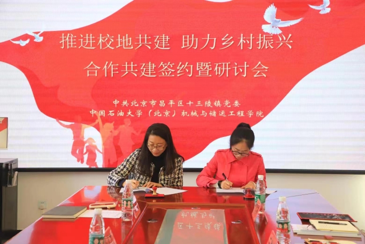 最后由鞠斌杰與馮銘明分別代表機(jī)械與儲運(yùn)工程學(xué)院、十三陵鎮(zhèn)黨委共同簽署了合作共建協(xié)議。