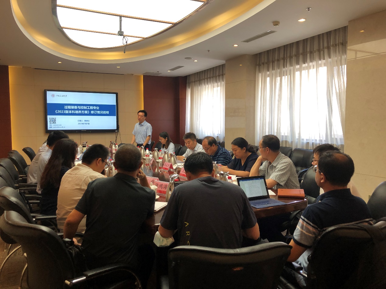 機械學院副院長張玉明介紹了新一屆過程專業建設指導委員會委員,副院長劉書海為各位委員頒發了聘書。過程專業負責人陳建義教授圍繞專業概況、修訂依據、修訂重點和課程地圖等內容,尤其是綠色低碳和數智化方面,匯報了2023級過程專業培養方案的修訂情況。與會專家和老師們分別建言獻策,進行了充分討論。