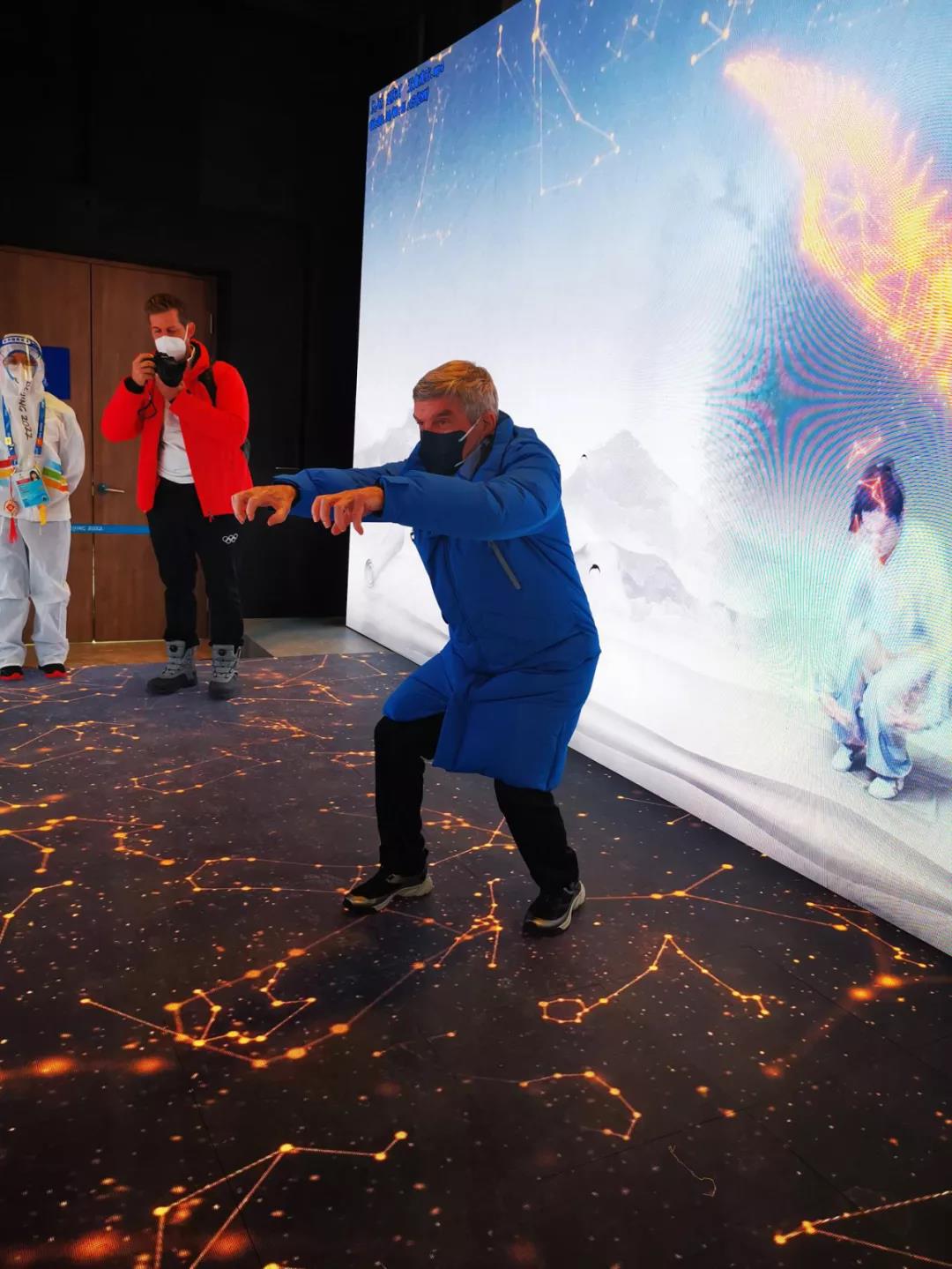 圖為巴赫主席在延慶冬奧村“10秒”中醫藥體驗館體驗五禽戲。 延慶冬奧村供圖