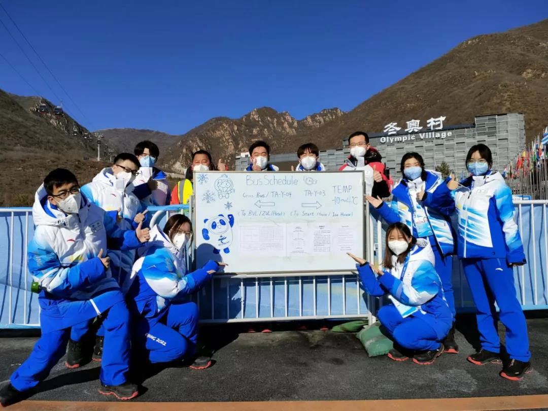 由于閉環內車輛多路線復雜,為了保證運動員準時、安全抵離,志愿者們在運動員班車場站用提示板制作了簡易乘車時間表,每天將當日班車打印張貼,供外國朋友們查詢。同時為了讓時刻表看起來更加“吸睛”,志愿者們又在提示板上畫上了“時尚頂流”冰墩墩,現在途經此處的外國友人總會拿起手機與志愿者們合影,儼然成了冬奧村內的網紅打卡地。
