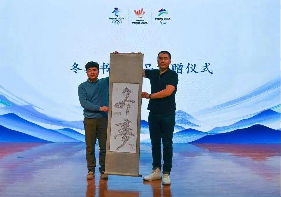 在延慶冬奧村(冬殘奧村)志愿者之家,一幅《冬夢》書法設計作品格外亮眼。