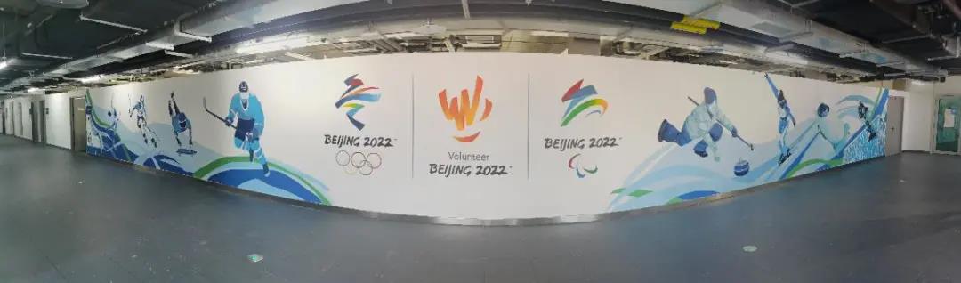 北京理工大學學生在首鋼滑雪大跳臺場館志愿者之家手繪20米墻面作品