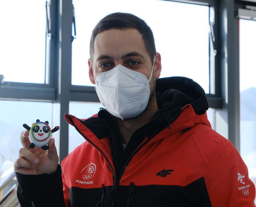 葡萄牙代表團成員展示自己制作的粘土冰墩墩。
