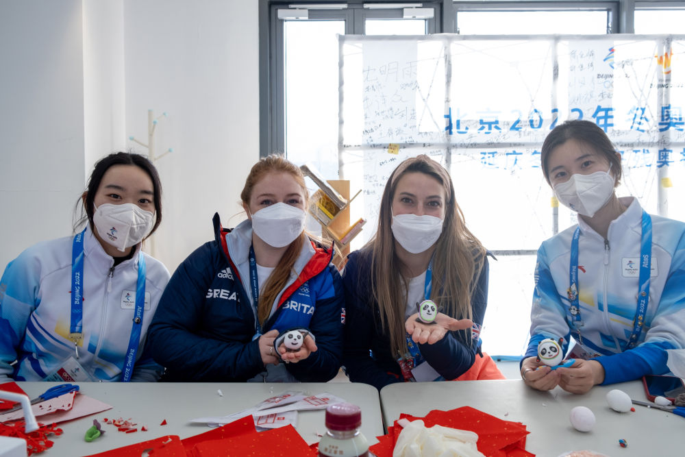 英國代表團成員展示自己制作的粘土冰墩墩。