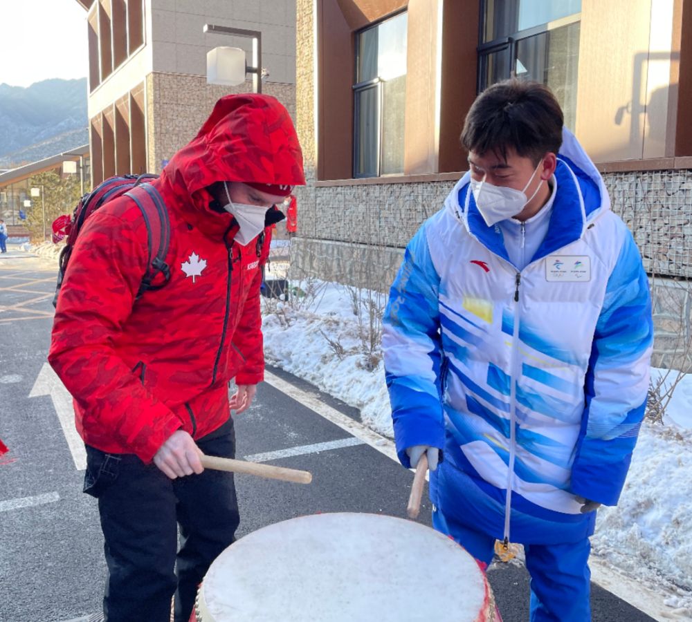 加拿大代表團成員和志愿者一起擊鼓慶祝元宵節。