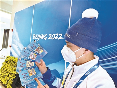 在延慶冬奧村的收費卡服務臺,大大小小的明信片和海報讓原本的單調工作環(huán)境變得充滿了色彩。