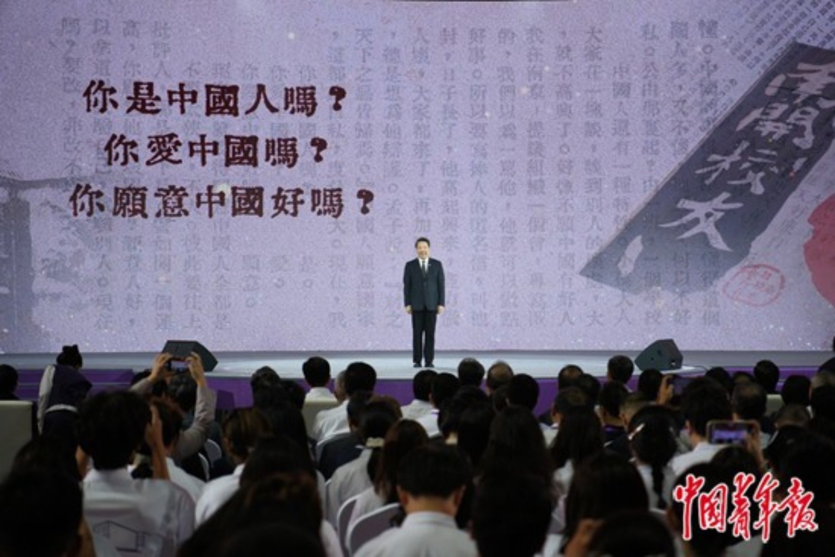 9月21日晚,天津,在南開大學舉行的“把青春華章寫在祖國大地上”大思政課網絡主題宣傳和互動引導活動上,南開大學校長陳雨露面向師生再次發出“愛國三問”——“你是中國人嗎?你愛中國嗎?你愿意中國好嗎?”1935年9月17日,南開大學首任校長張伯苓提出“愛國三問”,點燃了抗戰時期青年學生的愛國熱情,如今更是對當代學子的有力鞭策。田嘉碩/攝