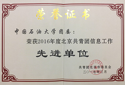 石大團(tuán)委獲“2016年度北京共青團(tuán)信息工作先進(jìn)單位”稱號(hào)