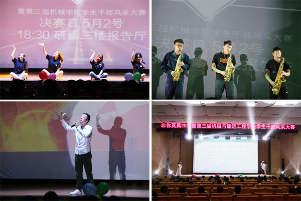 此次比賽歷時1個月,機械與儲運工程學(xué)院本科生、研究生180余名學(xué)生干部參加,比賽分別以筆試與PPT展示形式進行初試與復(fù)試,最終角逐處11名學(xué)生干部參加決賽。決賽分為展我本色(自我介紹VCR播放以及才藝展示)、一站到底(答題淘汰)、我是影帝(角色扮演)與針鋒相對(三分鐘演講以及對有關(guān)辯題進行辯論)四部分,期間,還有藝術(shù)團管樂團和中國政法大學(xué)CG街舞團的精彩表演。