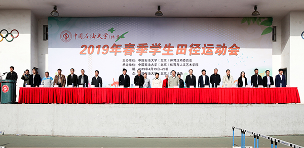 4月19日至20日,中國石油大學2019年春季學生田徑運動會在紅旗操場舉行,校領導山紅紅、張來斌、吳小林、韓克飛、鮑志東、李根生、韓尚峰,相關職能部門以及學院(研究院)負責人出席運動會開幕式。校長張來斌致開幕詞,黨委書記山紅紅宣布運動會開幕,黨委副書記、副校長韓尚峰主持開幕式。來自各學院(研究院)的3122名運動健兒參加了18個田徑項目、10個集體項目的競賽。