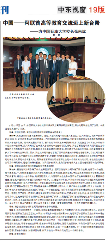 當前位置: 首頁» 媒體石大 《人民日報》海外版:校長張來斌專訪報道 發布時間:2012-11-21 | | 瀏覽量: 在10月9日出版的《人民日報》海外版中東刊中東視窗板塊刊登了就高等教育事宜訪問阿聯酋的中國石油大學校長張來斌接受《人民日報》記者訪問的報道。 分享到: 排行榜 薦讀 中石大召開2024年全面從嚴治黨工作部署會暨... 對口支援中國石油大學(北京)克拉瑪依校區工作... 中石大獲評 “昌平區學習型示范高?!?/h3> 中國石油大學2022年十大新聞揭曉 新年賀詞 | 雄關漫道 惟有登攀