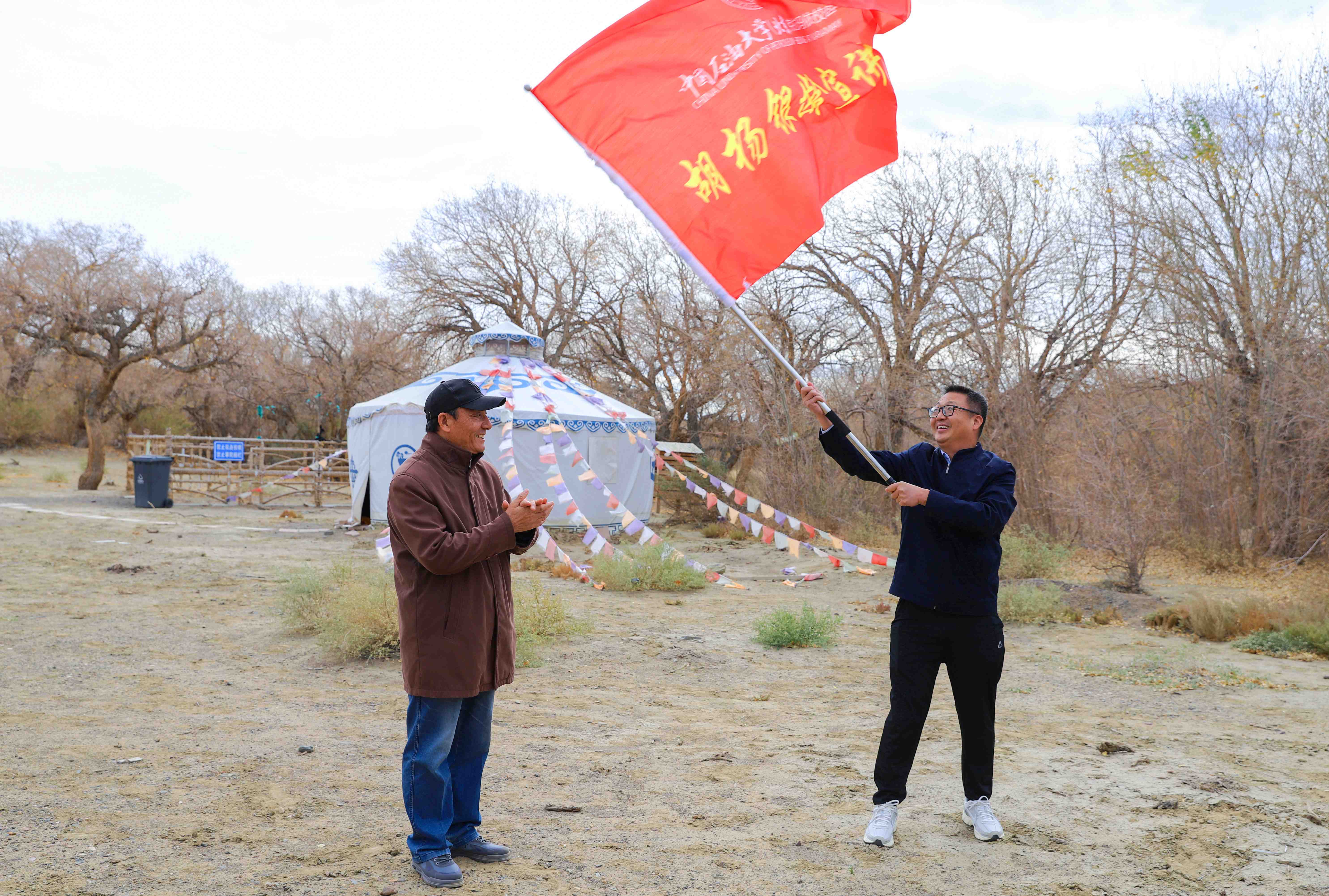 為充分發(fā)揮銀齡教師的優(yōu)勢和作用,做好總書記重要回信精神的宣傳闡釋,服務(wù)校區(qū)“三全育人”工作格局,校區(qū)組織成立胡楊銀齡宣講團。在一片蒼勁挺拔的胡楊林前,李軍為銀齡胡楊宣講團授旗,工商管理學(xué)院/馬克思主義學(xué)院銀齡教師王榮發(fā)進行胡楊精神宣講。