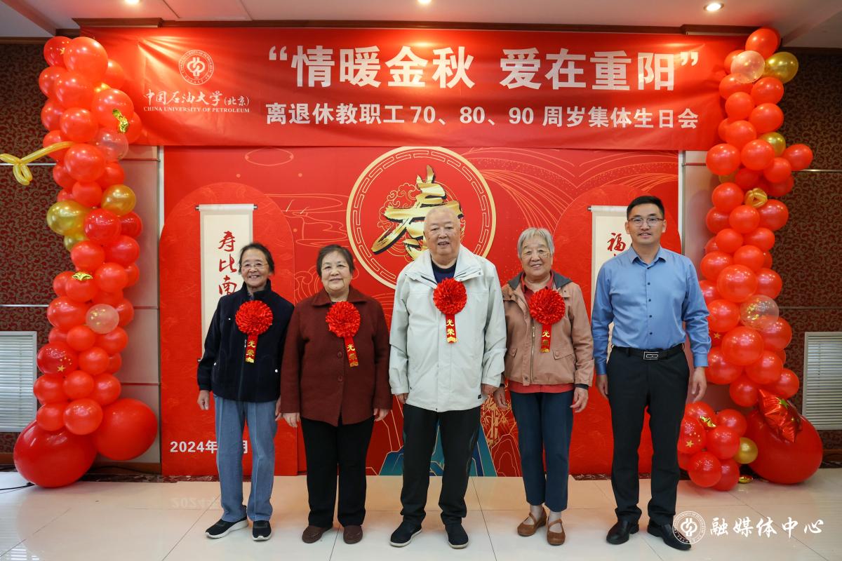在重陽節來臨之際,中國石油大學(北京)于10月9日在翠宮第九會議室舉辦了主題為“情暖金秋 愛在重陽”的70、80、90周歲離退休教職工集體生日會。學校黨委書記王同奇、黨委副書記蒲俊霖以及各相關職能部門負責人為到場的16位老壽星送上生日祝福。