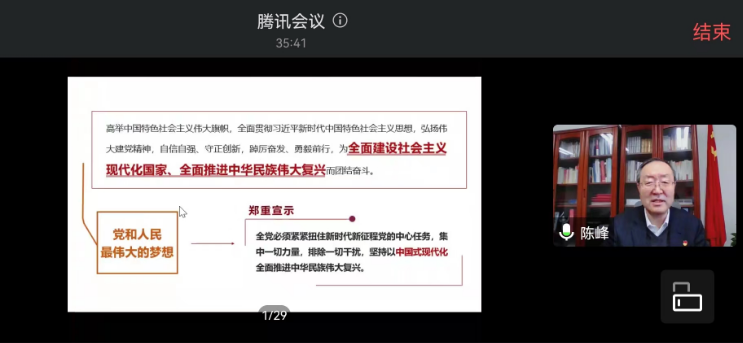 陳峰在宣講中指出,黨的二十大是在全黨全國各族人民邁上全面建設社會主義現代化國家新征程、向第二個百年奮斗目標進軍的關鍵時刻召開的一次十分重要的大會,事關黨和國家事業繼往開來,事關中國特色社會主義前途命運,事關中華民族偉大復興。深入學習宣傳貫徹黨的二十大精神,對于激勵廣大黨員干部和師生員工更加緊密地團結在以習近平同志為核心的黨中央周圍,落實立德樹人根本任務,全面對接國家科教興國戰略、人才強國戰略、創新驅動發展戰略,加快建設能源領域特色鮮明的世界一流研究型大學,保障國家能源安全、推動能源綠色發展,為全面建設社會主義現代化國家、全面推進中華民族偉大復興作出新的貢獻,具有重大現實意義和深遠歷史意義。
