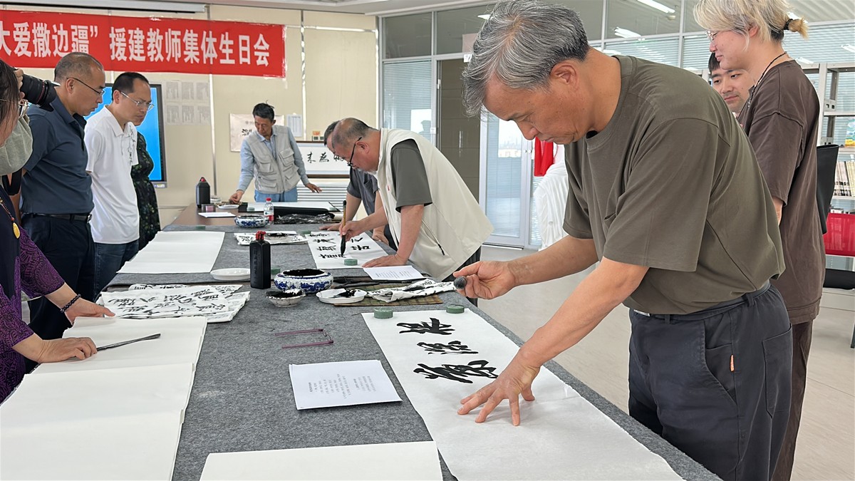 5月9日和12日,李如、任東會(huì)、中石大退休教師代表與克拉瑪依區(qū)書法繪畫攝影家及校區(qū)美育老師、書畫愛好者、援建教師開展了兩場書畫交流筆會(huì),以克拉瑪依校區(qū)文化建設(shè)、校區(qū)建設(shè)十周年和總書記回信五周年為主題創(chuàng)作了多幅書法作品,就石油精神如何通過藝術(shù)實(shí)現(xiàn)傳播、課堂教學(xué)中如何融入文化元素、如何增強(qiáng)學(xué)生的文化素養(yǎng)等進(jìn)行了深入交流。