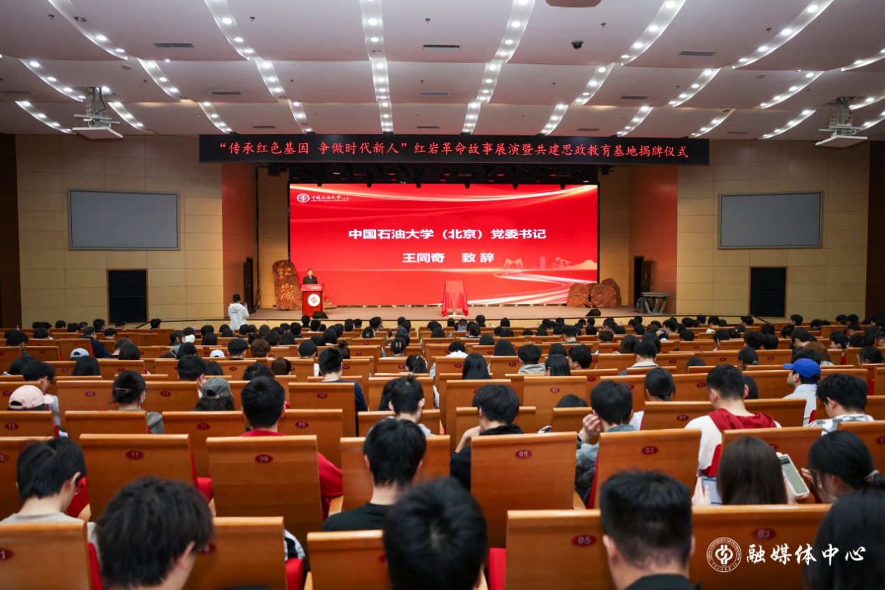 演出前,學校與重慶紅巖革命歷史文化中心簽署合作協議,共建思想政治教育基地。王同奇、雷瑩共同為“中國石油大學(北京)思想政治教育基地”揭牌。