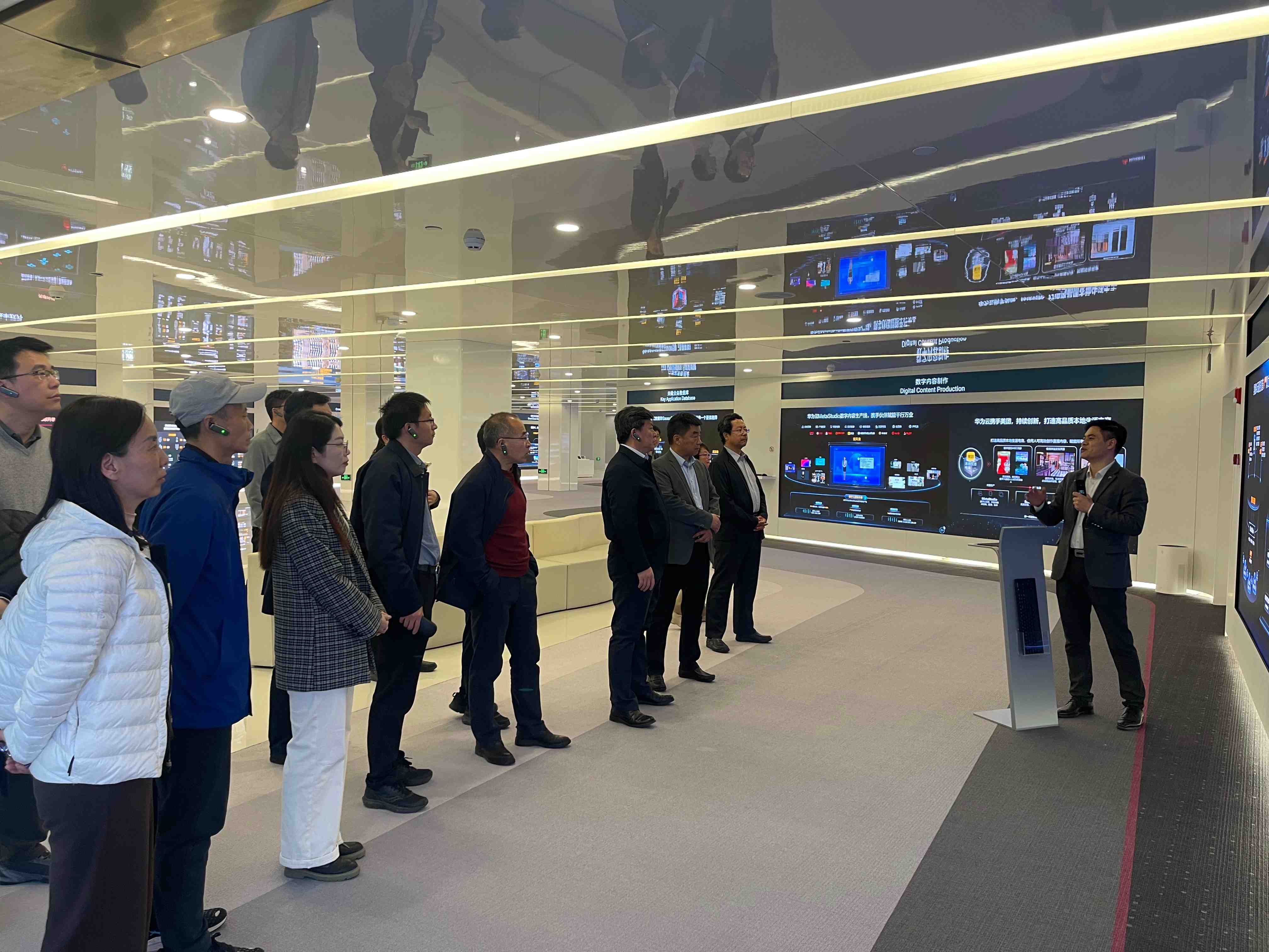 在工作人員的引導下,大家首先參觀了華為北京會展中心展廳。華為公司相關負責人詳細為大家介紹了人工智能前沿科技發(fā)展情況,并重點講述了人工智能在智慧教育、智能油氣等領域的最新科技和產(chǎn)品應用。參觀人員現(xiàn)場體驗了數(shù)字化科技成果和有關設施裝備,并就感興趣的問題與工作人員進行交流探討。
