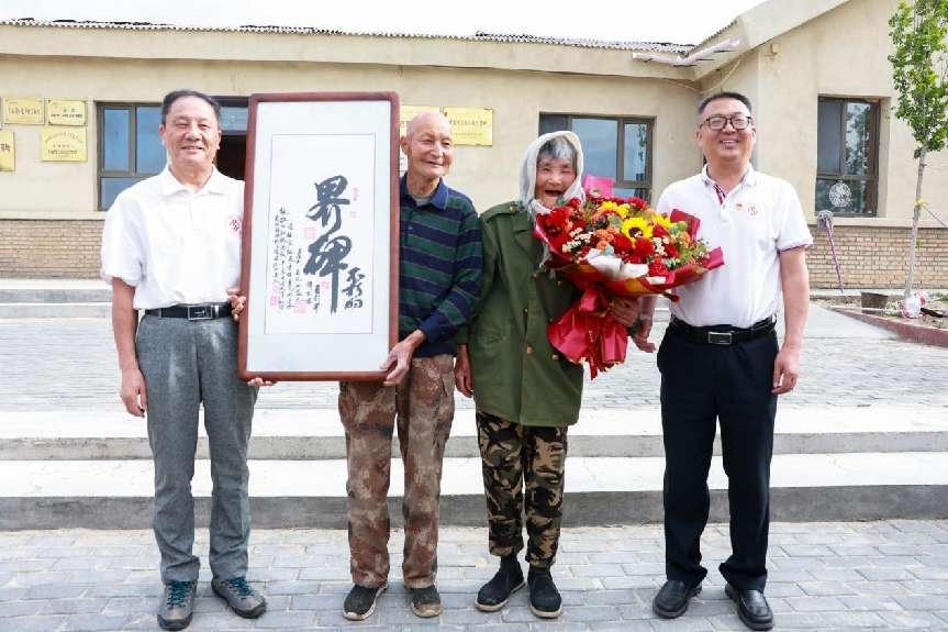 5月19日上午,實踐團一行來到“七一勛章”獲得者魏德友家里,看望慰問魏德友夫婦,感悟兵團精神。“家住路盡頭,屋在國界旁,種地是站崗,放牧為巡邊”,1964年至今,魏德友、劉景好夫婦像是行走的“夫妻崗哨”,把自己“種”在薩爾布拉克草原上,堅守邊境60年,踐行“一生只做一件事,我為祖國守邊防”的誓言。觀看老人的事跡影片,握著兩位老人的雙手,在老人居住的老房子、大場院參觀,老師們深受感動。銀齡教師、華東理工大學王榮發教授代表校區援建教師向魏德友夫婦贈送書法作品《不朽的界碑》,表達對他們的敬意,表示校區全體援建教師將以初心鑄“疆心”,為邊疆教育事業貢獻力量。
