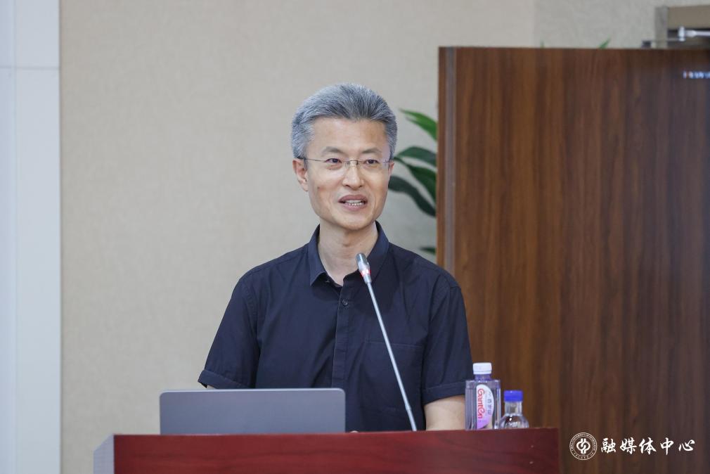 李洪巖圍繞“語言、傳播、藝術、文化”進行題解,從傳播媒介發(fā)展帶來的語言傳播功能的拓展出發(fā),論述國家高度、大眾角度、人文厚度等多維評價體系在現(xiàn)今語言傳播上的運用;深入剖析了中華經(jīng)典誦寫講的藝術魅力和文化內(nèi)涵,結(jié)合自己豐富的實踐經(jīng)驗介紹了誦讀技巧和建議;通過豐富的經(jīng)典文學作品案例教學,展示了如何通過語言誦讀技巧實現(xiàn)對經(jīng)典作品的創(chuàng)作性表達,引導師生深刻理解語言的力量,通過語言傳遞正能量,促進文化交流與發(fā)展。