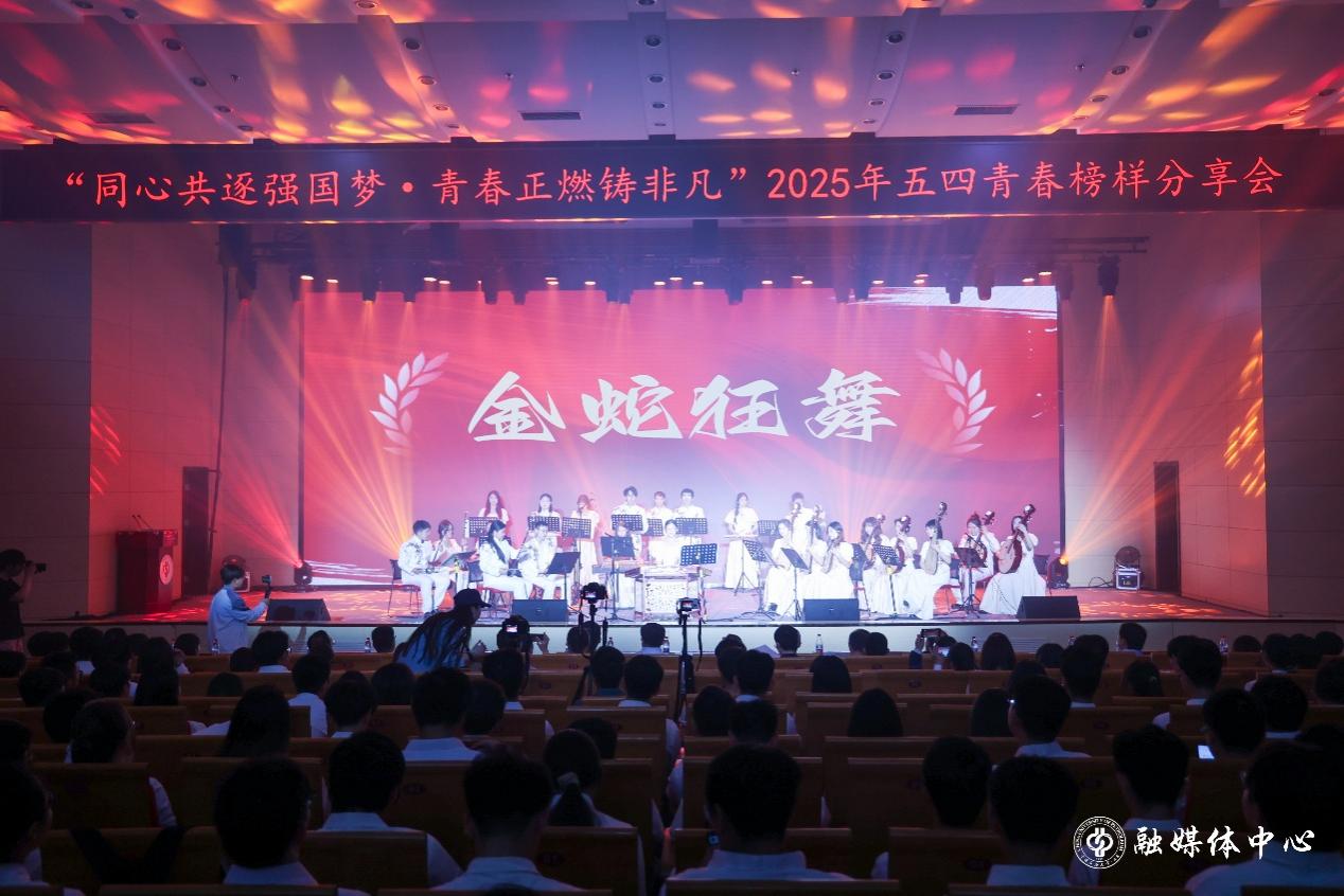 此次青春榜樣分享會分為敬不凡、追非凡、創超凡三個篇章,生動詮釋了中石大青年昂揚向上、銳意進取的精神風貌。開篇節目《金蛇狂舞》明快有力的節奏展現青年學子蓬勃青春活力。
