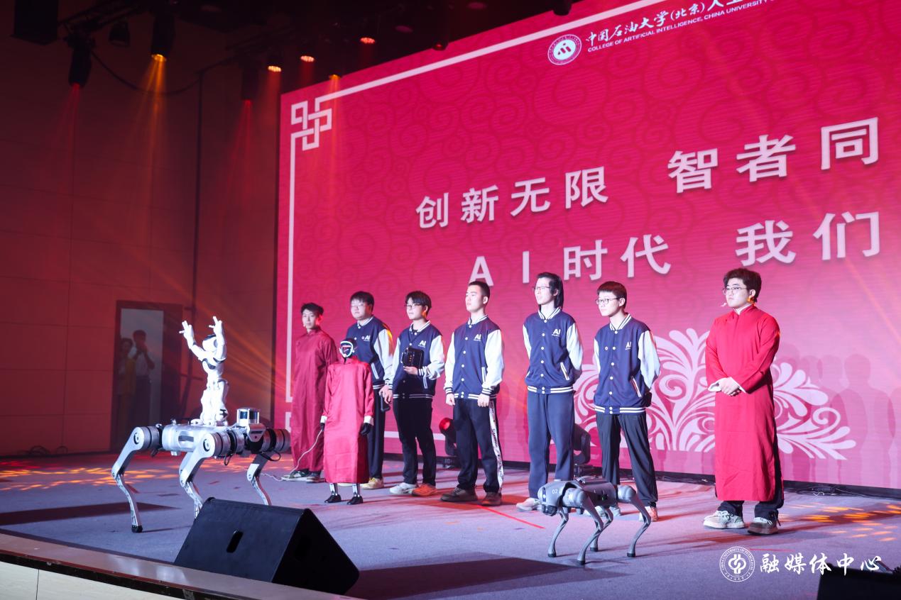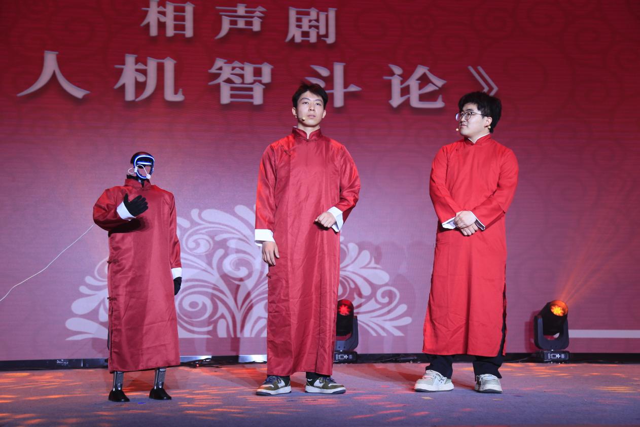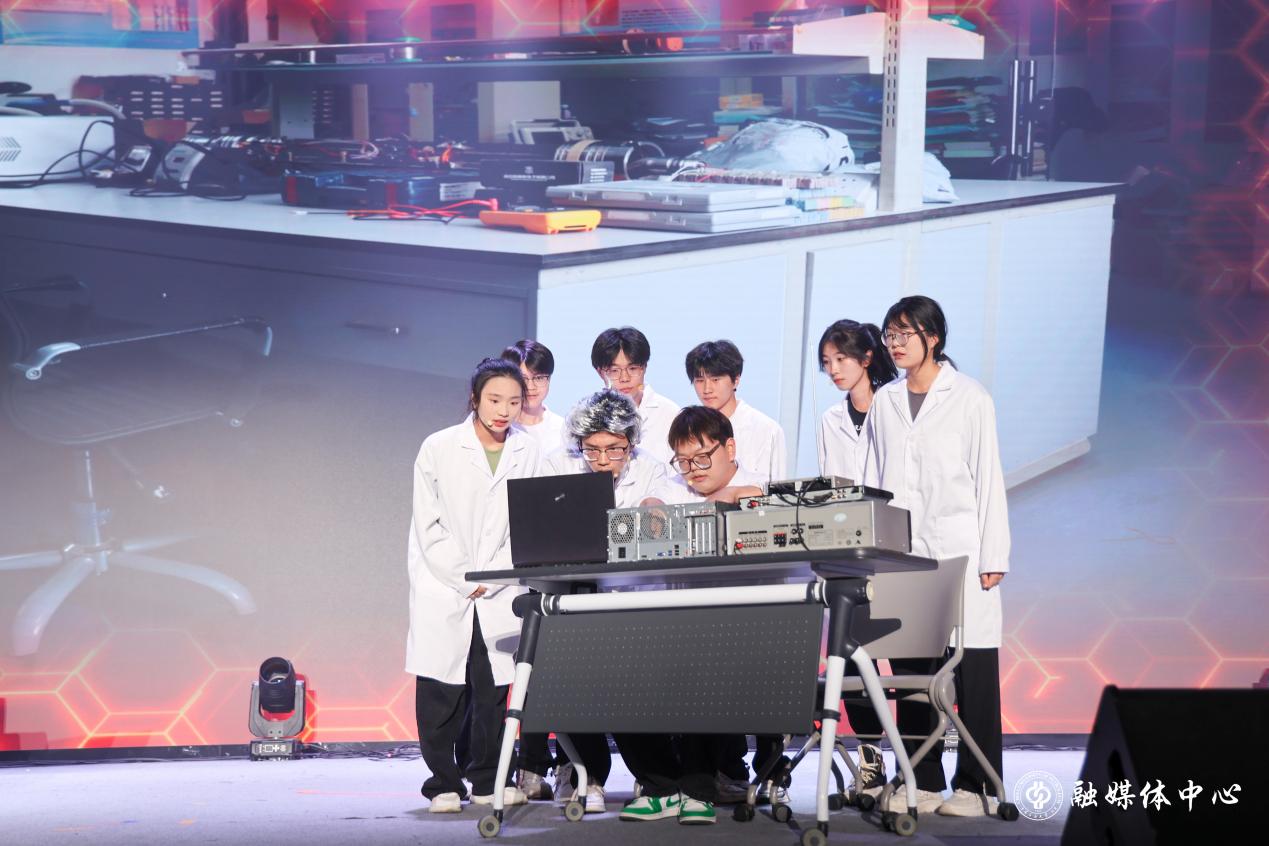 “敬不凡”篇章中,情景劇《地心密鑰》通過情景劇、數據可視化與裝置模型演繹,展現青年科研團隊突破萬米深地極限的壯舉。相聲劇《人機智斗論》,以一臺人工智能學院自主編程的人形機器人(具身智能)為核心,展現AI的思考力、大模型的可進化力、具身智能的互動力,同時讓具身智能小菜在幽默中擔當教育者的角色,弘揚主流價值觀。
