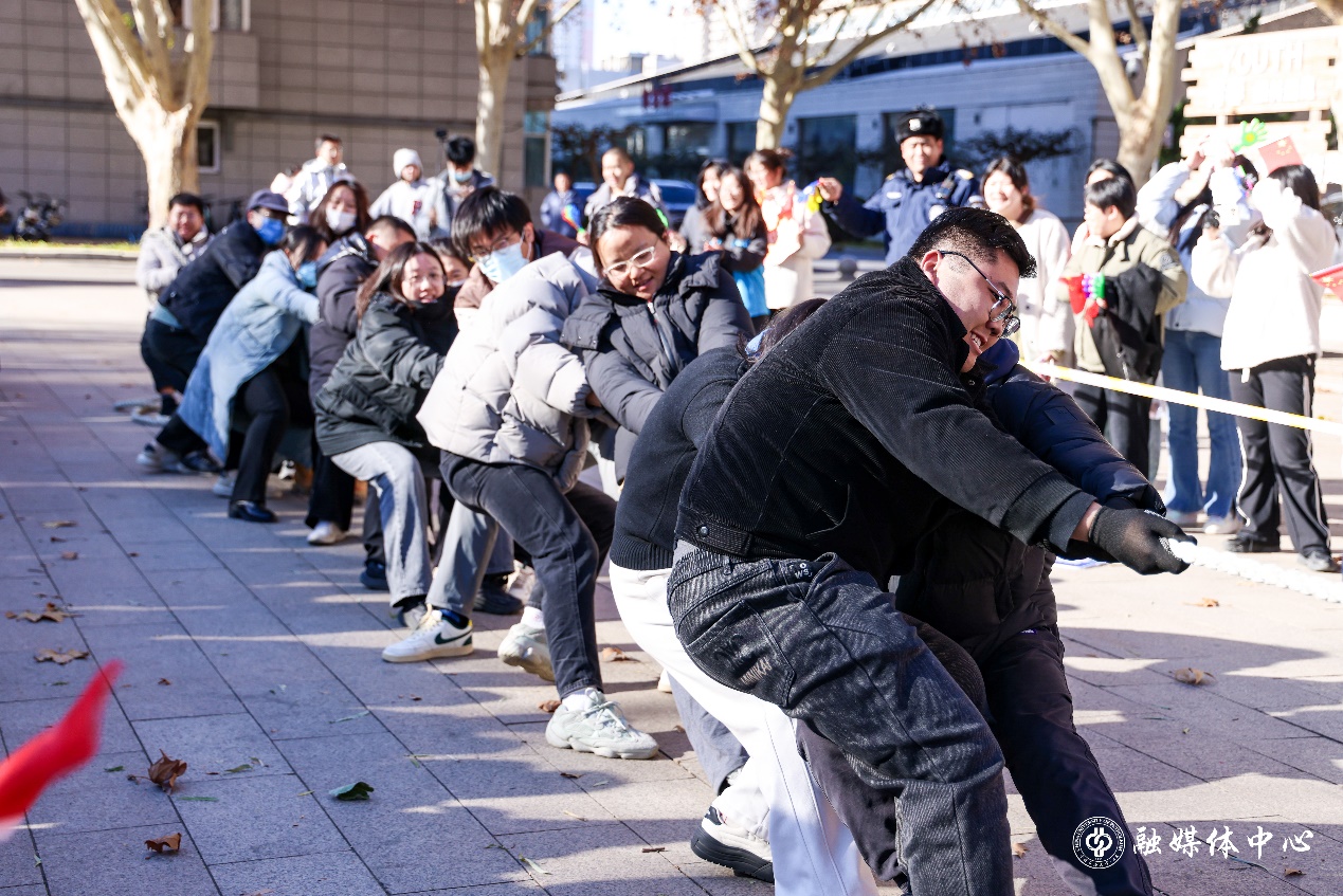 為深入貫徹落實全民健身國家戰(zhàn)略,積極營造人人參與體育鍛煉的機關氛圍,促進機關干部職工提升身體素質、加強團隊合作、激發(fā)干事熱情,11月29日,機關黨委、機關工會聯(lián)合舉辦校機關第二屆“奮進杯”拔河比賽。校黨委副書記蒲俊霖出席活動并為獲獎隊伍頒獎,相關職能部門負責人、參賽隊員、拉拉隊員等200余人參加活動。