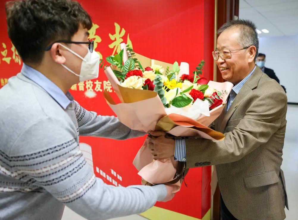 85歲的余世誠教授分享了學校退休教師們得知“四喜臨門”消息后的激動心情,表示為自己教過的“親學生”當選院士深感欣慰。他飽含深情地回顧了自己作為“思政課先生”,與在座的高德利、徐春明、張來斌、孫煥泉等“院士后生”之間的難忘故事。四位院士昔日的老師和同學也紛紛發言,向四位院士的當選表示祝賀。