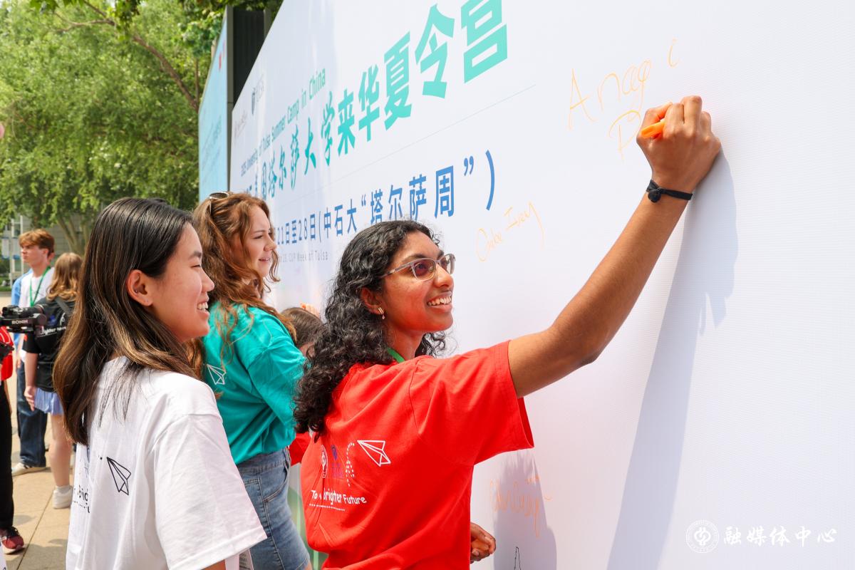 塔爾薩大學師生表示,希望通過深入體驗中國文化與科技創(chuàng)新,增進對中國歷史的興趣以及對現代中國的認知,留下在華美好回憶。中石大赴美學生代表分享了在塔爾薩大學的學習經歷,并期待雙方學子能夠積極展開交流。志愿者代表表示,將全力為營員提供服務,保障交流營順利開展。